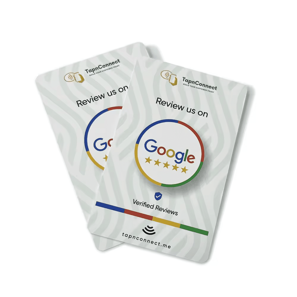 The NFC-enabled Google Review Card is a compact, convenient solution to help you collect more customer reviews on your Google Business Profile. This sleek card, powered by NFC technology, allows customers to leave a review with a simple tap of their smartphone—no need for apps or searching your profile!